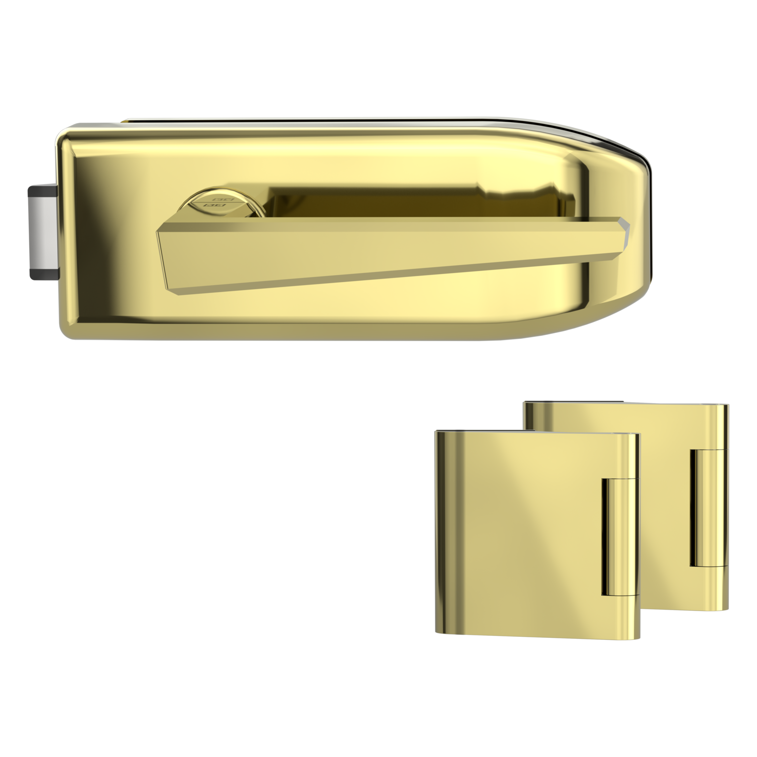 Griffwerk Jette CREATIVO 1.0 -Messing Optik Ganzglastürbeschlagset -3-teiliger Bandsatz -mit Griff JETTE CUT ME-O -UV