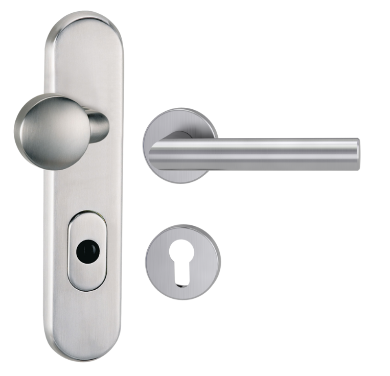 GRIFFWERK Edelstahl Kombi-Schutzbeschlag geeignet für den Einsatz im Privat- und Objektbereich, geprüft und zertifiziert nach DIN EN 1906 Anhang A und DIN 18257